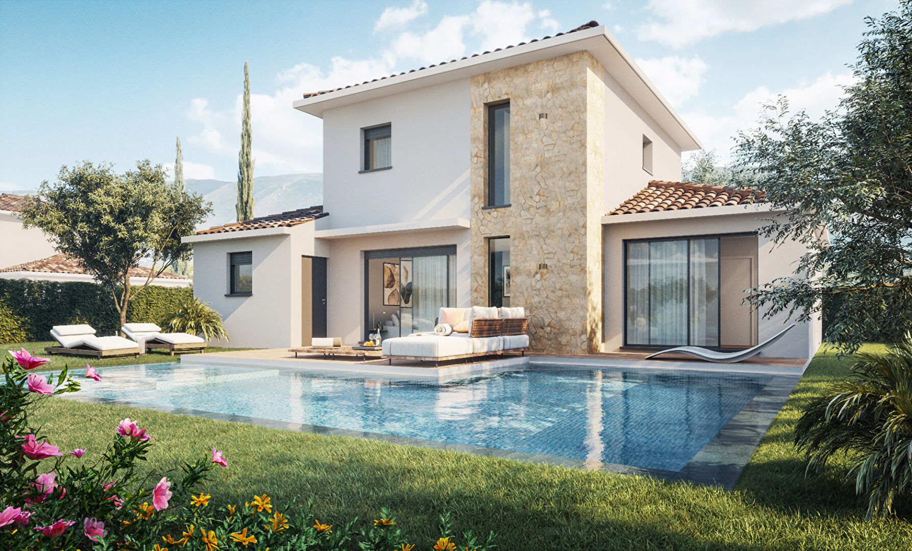 Cadre résidentiel, proche commodités, belle expo, sur 550m² de jardin, votre Villa de type 4 de 90m² ou type 5 à partir de 115m², aux prestations de qualités, normes RE2020, prix à partir de 550000 euros Frais de notaires réduits. Nous contacter pour plus d’informations Patricia BATTINI (EI) Agent Commercial – Numéro RSAC : – .