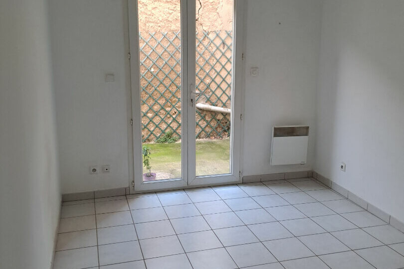 Appartement de Type 3 d’environ 60m² en rez de chaussée comprenant : Un séjour avec un coin cuisine aménagé, 2 chambres, 1 salle d’eau, 1 wc indépendant, une buanderie. A l’arrière, une cour privative (accès par une des deux chambres) et 1 place de parking devant le logement.