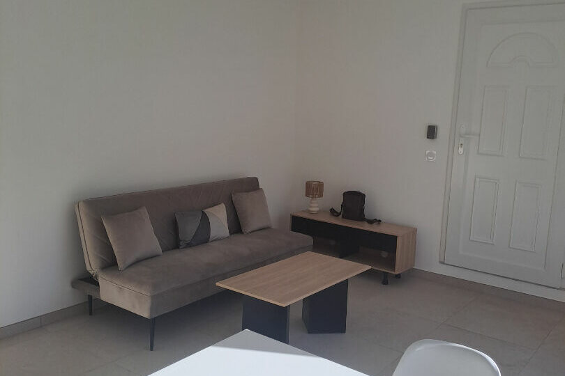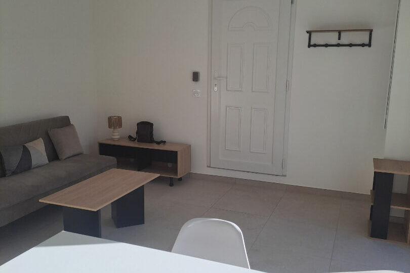 Appartement récent en RDC d’environ 43m2 entièrement meublé, comprenant un séjour avec coin cuisine, une salle d’eau, un WC indépendant, une chambre avec grand dressing. Une terrasse, une petite cave. 1 place de stationnement. Libre début avril 2026.