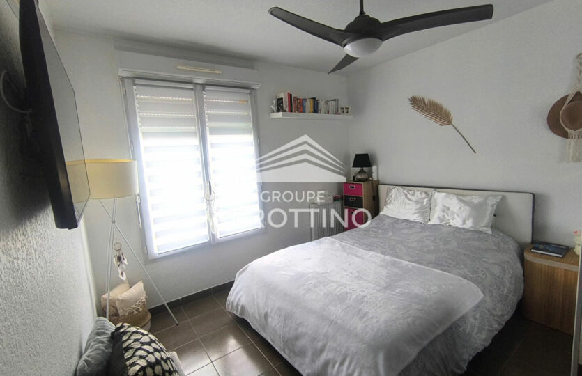 Dans le 14e arrondissement de Marseille, au coeur d’une résidence récente et sécurisée 2011 avec parc arboré, découvrez ce charmant T3 situé au 2e et dernier étage, offrant calme et luminosité. Vous serez séduit par son séjour spacieux et lumineux de 24 m², équipé de climatisation, s’ouvrant sur une agréable terrasse exposée Ouest de 16 m², idéale pour profiter des belles soirées ensoleillées. L’appartement propose également deux chambres confortables (9 m² et 12 m²), une salle de bain avec WC, ainsi qu’une entrée fonctionnelle avec espace de circulation agréable. La résidence, bien entretenue, offre un cadre de vie verdoyant et sécurisé, avec chauffage et eau chaude collectifs pour plus de confort. Une place de parking extérieure privative complète ce bien. Aucun travaux à prévoir : vous n’avez plus qu’à poser vos valises ! Bien rare sur le secteur – contactez-moi rapidement pour organiser une visite. Copropriété de 72 lots – dont 72 lots habitation. Charges annuelles : 2184 euros. Guillaume ACHARD (EI) Agent Commercial – Numéro RSAC : – .