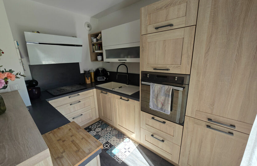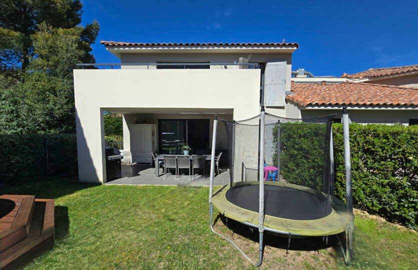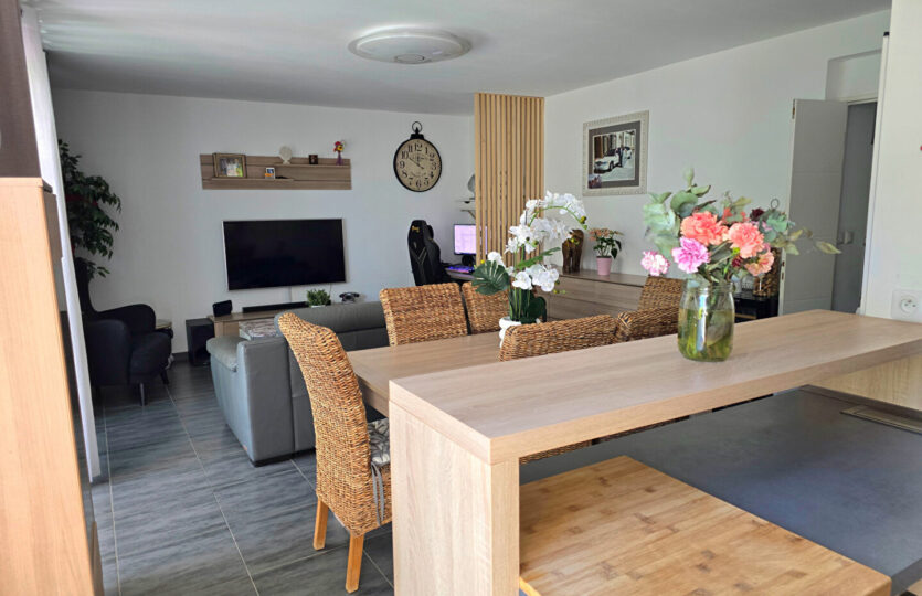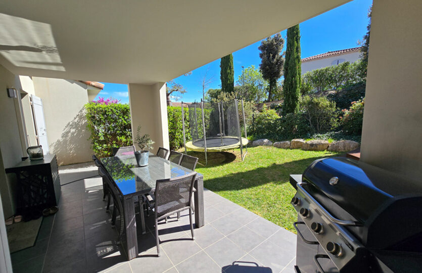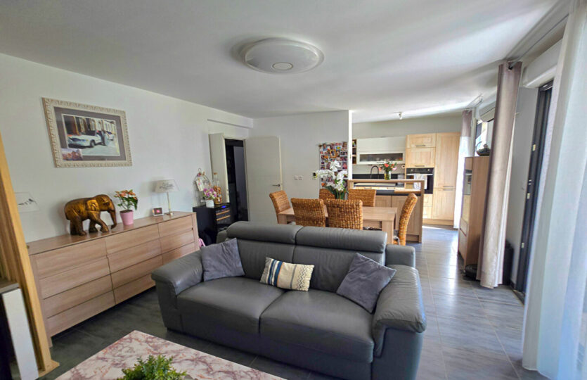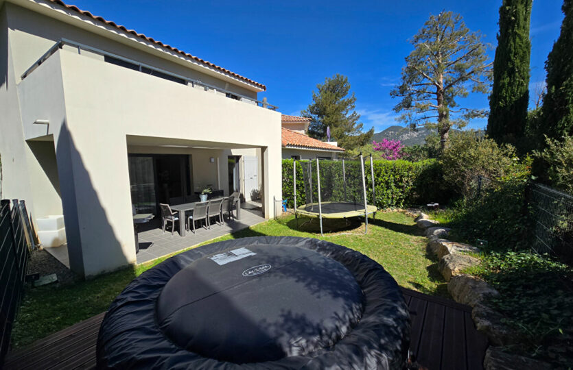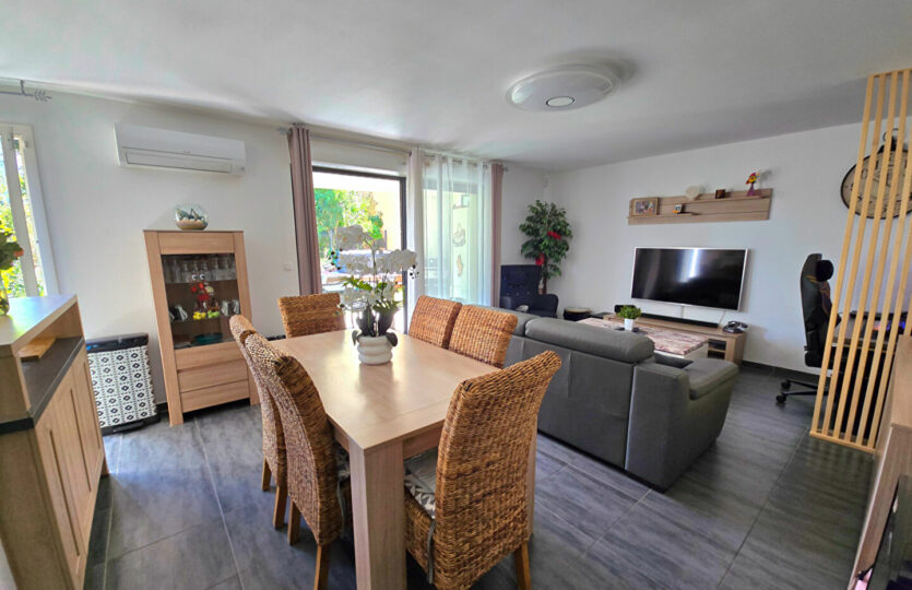 Dans un environnement paisible, à proximité immédiate des commodités et exposé plein sud, découvrez ce bel appartement récent de type 4 d’une surface de 82 m² avec extérieur. Situé au 1er étage d’une résidence de deux niveaux avec rez-de-jardin, il s’ouvre sur une agréable terrasse couverte de 20 m² prolongée par un jardin privatif de 65 m², équipé d’un arrosage automatique. Vous apprécierez ses beaux volumes, notamment une pièce de vie lumineuse de près de 32 m². Les prestations sont actuelles et de qualité. L’appartement dispose d’une suite parentale avec salle d’eau, ainsi que d’une salle de bain indépendante pour la partie enfant. Une place de parking privative complète ce bien. Possibilité achat garage de 40m². A visiter sans tarder ! Patricia BATTINI (EI) Agent Commercial – Numéro RSAC : – .